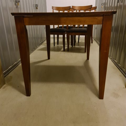 Matgrupp med 2 stolar och iläggsskiva.