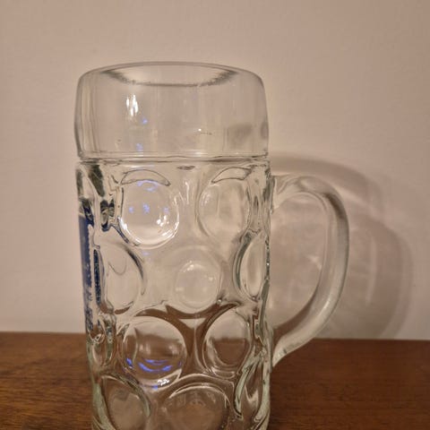 Finns en liten spricka högst upp på handtag. Går fortfarande att använda utan problem.