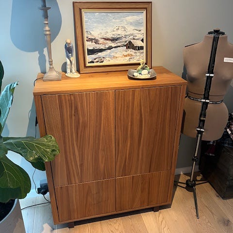 På grund av flytt säljer vi vårt skåp från serien Stockholm 2025. Inköpt på Ikea i april 2025 och varsamt använt men med två mindre skönhetsfläckar.