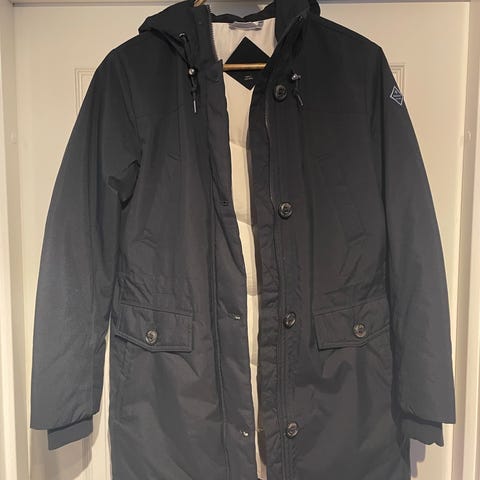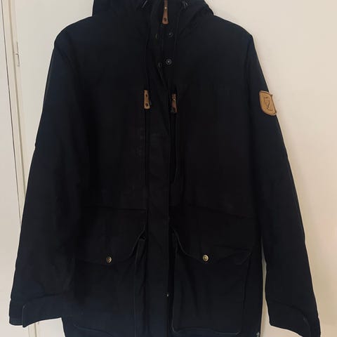 Säljer en parka från Fjällräven, modellen Kiruna Padded Parka. Svart lättfodrad lång parkas med huva i G-1000. Fodrad med Primaloft Black, värmer även i fuktigt tillstånd. Parkasen har tvåvägs dragkedja, bröstficka och samt fickor på sidorna. Reglerbar midja med knappar på ryggen. Nypris ca. 4400 :-