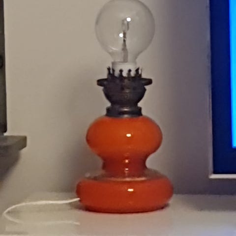 Kristallampa 50-70 tal med tidstypiska detaljer som diamantslippad fot. Original strömbrytare på sladden och kontakten . Höjd på lampfoten 22 cm . Skärmen kommer med. Retro .
