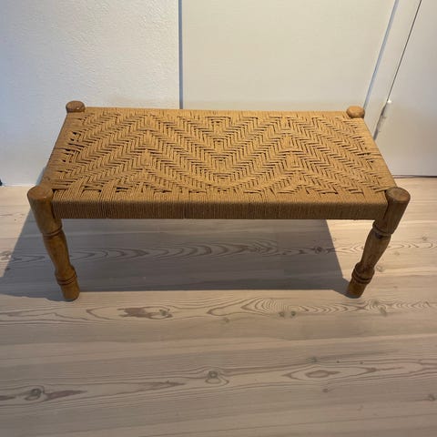 Mått: bredd 189 cm, djup 66 cm och höjd inkl läderdyna 45 cm