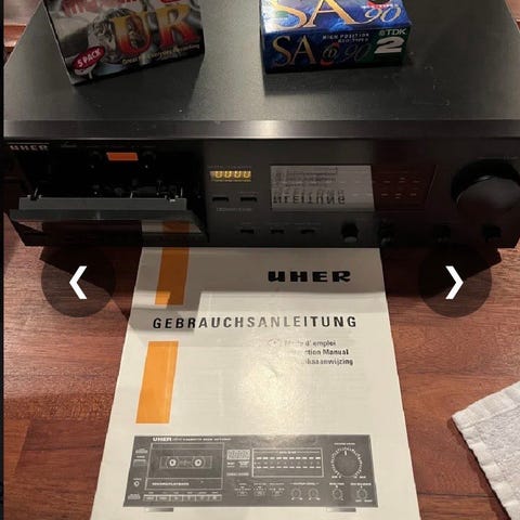 Få av dessa kassettdäck är så fina i skicket. Allt fungerar distinkt och väl. Visserligen bara två huvuden men makalös ljudmässigt .