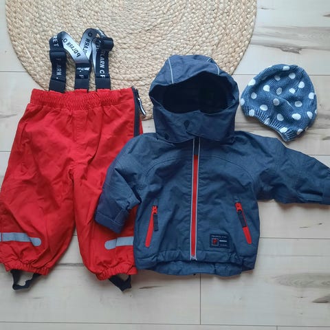 Polarn O. Pyret skaloverall för barn i storlek 74. Overall med huva, långa ärmar och ben. Försedd med dubbla dragkedjor framtill, resår vid ärm- och benslut samt reflexdetaljer.