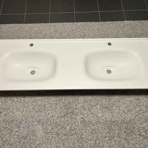 Tvättställen har centralt placerade avloppshål i standardbredd.