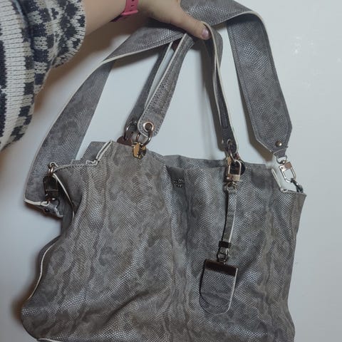 Cobra läderväska för kvinna i brunt läder med präglad struktur. Väskan har dubbla handtag och flera innerfack, inklusive fack med dragkedja, vilket ger plats för mindre tillhörigheter som plånbok, nycklar och mobil. Passar för vardagsbruk och arbete där en medelstor handväska önskas.