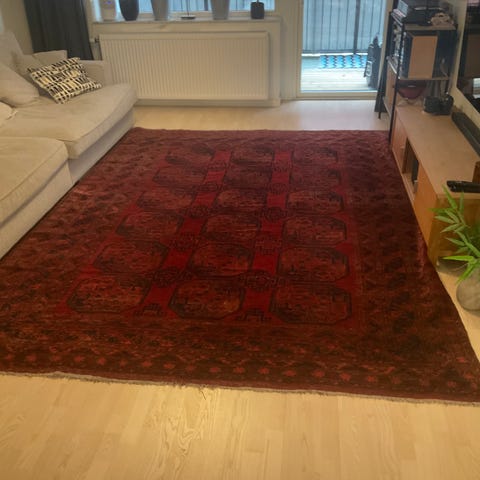 Säljer en äkta Afghansk handknuten matta i bra skick. Mattan kommer från ett djur och rökfri hem.