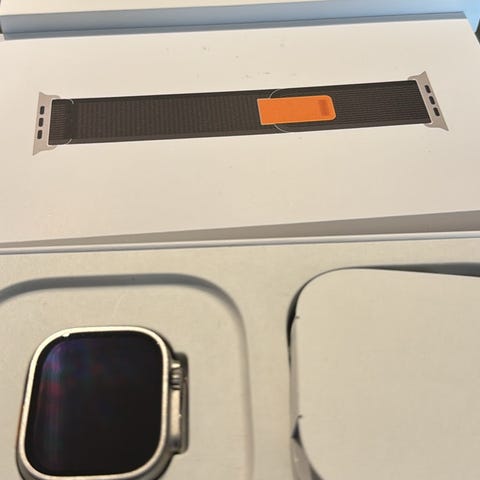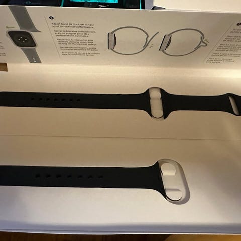 Oanvänd laddarkabel och oanvänt armband i storlek XL