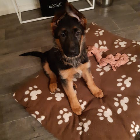 En Schäfertik kvar LUNABELL 20 veckor född 250928 Otroligt glad pigg livlig å lättlärd valp. Avmaskad Chippad Vaccinerad och Vetrinärbesiktad söker ett aktivt liv i ett kärleksfullt hem. Hör av dig om du är intresserad och skriv och berätta vad ni har att erbjuda denna vackra lilla tjej. För vidare kontakt skicka erat namn och nummer så hör jag av mig