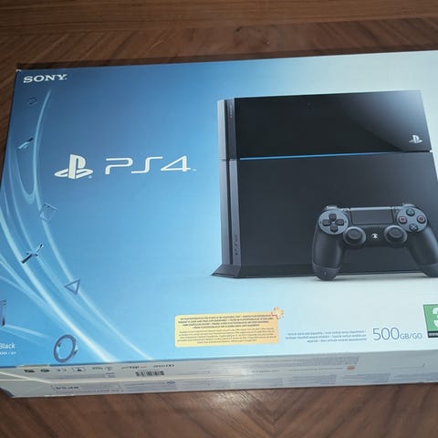PlayStation 4, originalmodell med 500 GB lagringsutrymme. Konsolen är återställd till fabriksinställningar och redo. Konsolen och kontrollen startar och fungerar.