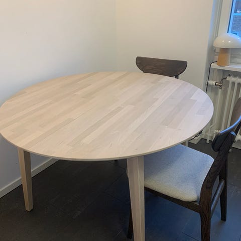 Bordet har fått defekter av vatten under åren (se bilder), därav det låga priset. Med en fin duk på bordet är det inget som märks! Nypris: 7995kr. Säljes för 2000kr.