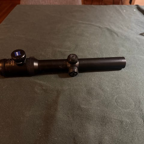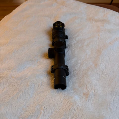 Leupold VX-6 kikarsikte 1-6x24 i svart utförande. Variabel förstoring från 1x till 6x och objektivdiameter 24 mm. Siktet har belyst riktmedel med röd punkt i centrum. Justerrattar för höjd och sida sitter på mitten av tuben. Passar montering på jakt- eller sportskyttegevär med lämpliga fästen (ingår ej om inte annat anges i annonsen).