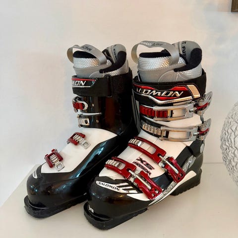 Salomon X3-70 alpina pjäxor i storlek 23.0 med sulmått 277 mm. Färg vit med svarta och metallfärgade spännen. Modellen har fyra justerbara spännen samt powerstrap upptill för bättre passform runt vrist och skaft. Passar för alpin åkning i pistskidor med kompatibla bindningar. Storlek och mått är präglade på skalet: 23.0 och 277 mm.