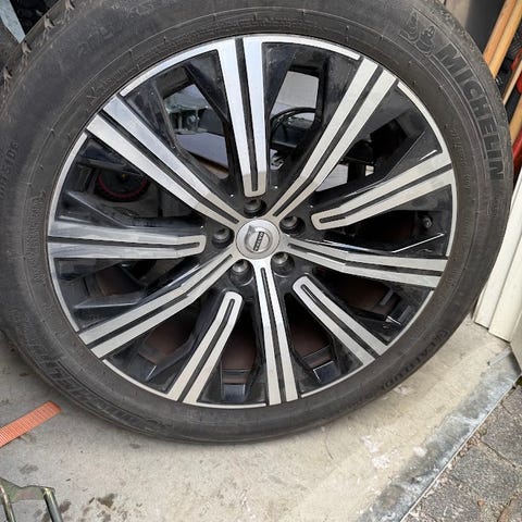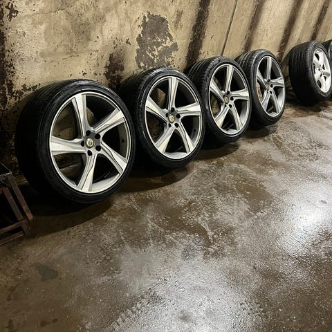 20" 10-Spoke Turbine Black Diamond Cut Volvo orginal säljes med sommardäck. Mönsterdjup 4,5 mm. Nypris cirka 9000 kr/st fälg.