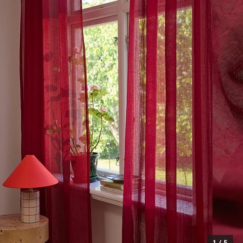 IKEA gardin röd mönstrad