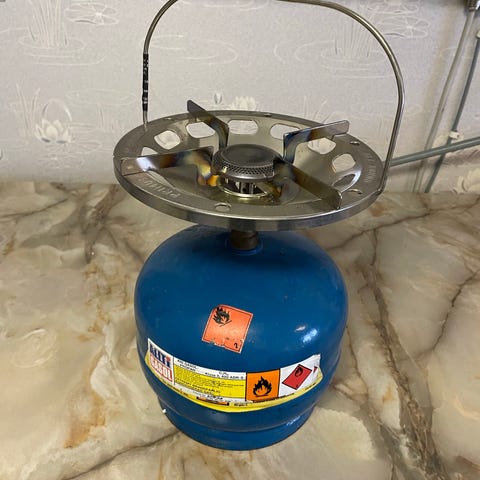 Komplett med gasol säljes för 2000:- och extra slang till stor gasoltub fås med.