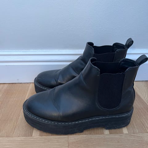 Ett par svarta boots i skin med dragkedja framtill och foder inuti