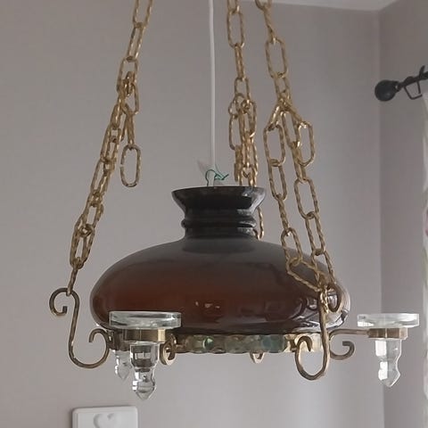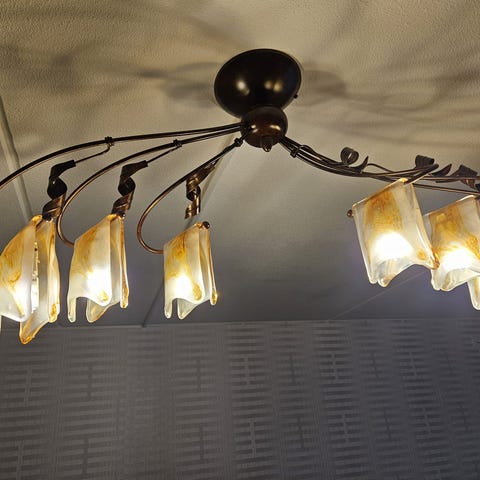 Taklampa femarmad glas metall brun