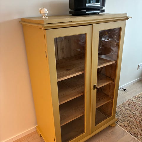 Vitrinskåp 60-70 tals med hyllor och förvaring