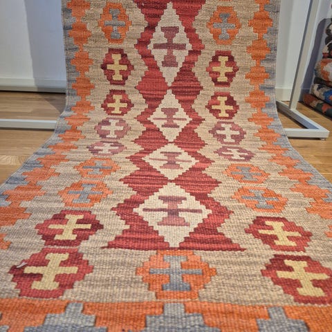 Handvävd kelim från landsbygden, helt ny och aldrig använd.
