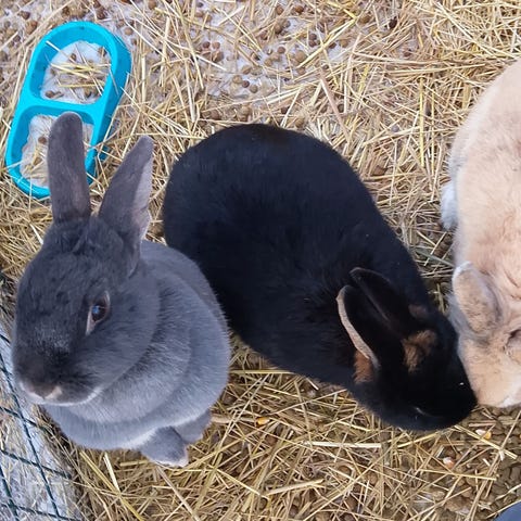 Kaninerna säljes tillsammans och kommer med bur samt övriga tillbehör. Allt säljes för 500 kr. Redo att flytta direkt. Passar bäst hos någon som har tid och intresse för att ta hand om dem på ett ansvarsfullt sätt.