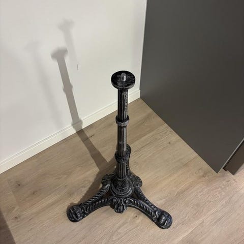 Höjd: 104 cm stativhöjd som barbord. Alternativt delbar vid halva stången om du hellre vill ha ett cafébord. Stången går att lossa helt från foten. Tung och stabil konstruktion. Aldrig använd utomhus så helt fri från rost.