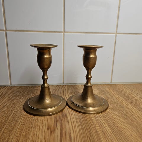 Vintage ljusstakar i mässing med kulor