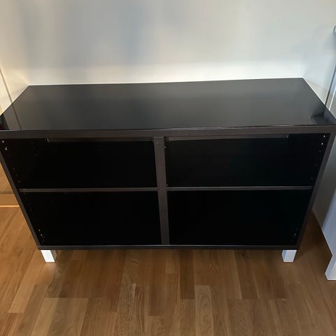 Tre hyllplan per sektion, varav den mellersta är öppen/glas i dörren, som gör att belysningen syns.