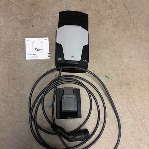 V2C Trydan laddbox för elbil med fast kabel typ 2. Laddboxen är märkt med effekt upp till 22 kW och är avsedd som laddpunkt för hemmabruk eller annan fast installation. Enheten levereras i originalkartong med integrerad kabel och kontakt. Färg: svart. Laddboxen är CE-märkt enligt etiketten på förpackningen.
