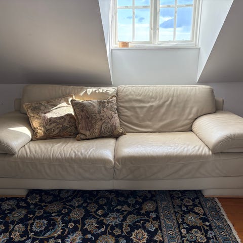 2-sits beige skinnsoffa i ok skick säljes pga platsbrist.