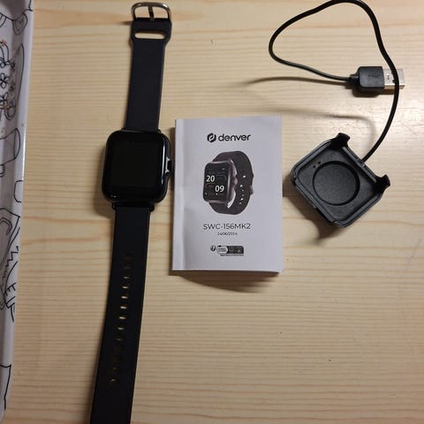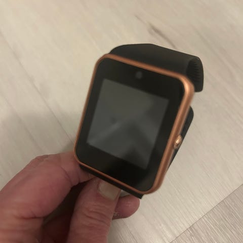 Billig smartwatch som jag har för liten handled för. Passar nog män bättre.