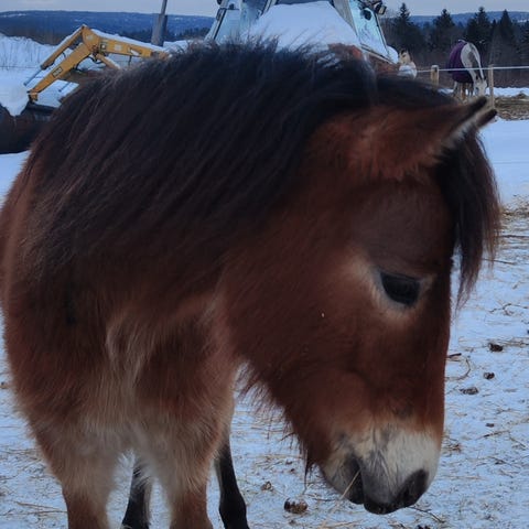 Gomnes Hans T. 14årig avelsgodkänd kallblodshingst. 151cm. Han söker allra helst ett sista hem!