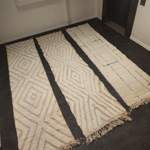 Äkta Beni Ourain matta från Marocko. 100% ull. Gul och off white.
