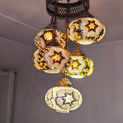 Taklampa från Turkiet med mosaik i flera färger ger ett mys ljus