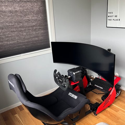 Säljer min racingsimulator då jag inte har tid att använda den längre. All elektronik från Simagic är inköpt 2024, skärmen, handbromsen, riggen och stolen är köpt 2022. Allt fungerar felfritt är är i väldigt bra skick. Vill sälja allt som ett.