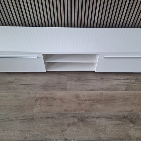Bestå Burs TV-bänk i mkt fint skick. Högglans vit färg. Mått : 180*41*49 cm
