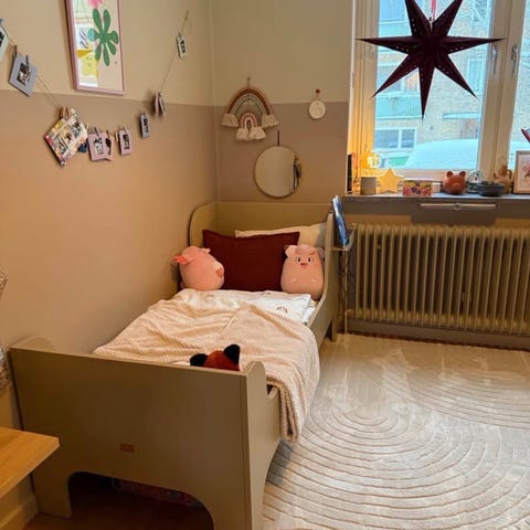 Sängen är en utdragbar modell som kan anpassas efter barnets längd.
