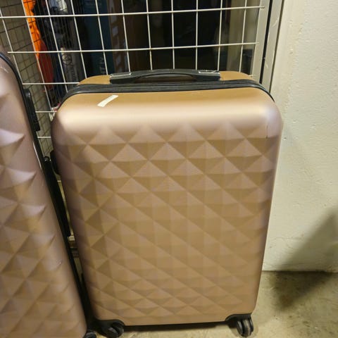 En brun resväska med två hjul, 41x62x22,5 cm.