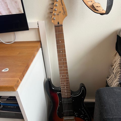 Squier Stratocaster elgitarr vit ( by Fender 1984)