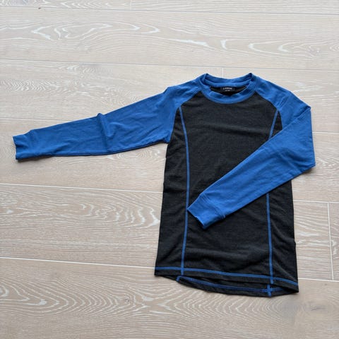 Långärmad träningströja (egentligen SURF) för herr i storlek L. Tröjan är turkos med en ljus kontrastdetalj framtill. Tillverkad i ett tunt, syntetiskt funktionsmaterial som är anpassat för träning och annan fysisk aktivitet. Passar för inomhus- och utomhusträning, exempelvis löpning, gym eller allmän motion.