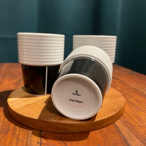 Rörstrand Filippa K mugg randigt svartvit porslin