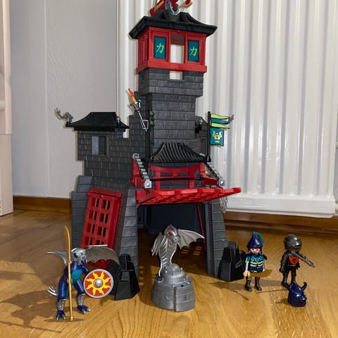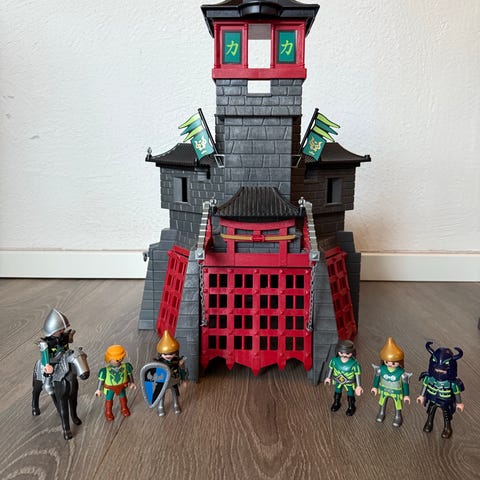 Playmobil borg lekset med asiatiskinspirerad borg i svart och rött. Setet innehåller en större borg med flera våningar, torn, portar och trappor samt flera Playmobil-figurer utrustade med tillbehör som vapen och sköldar. I setet ingår även drakar med rörliga delar.