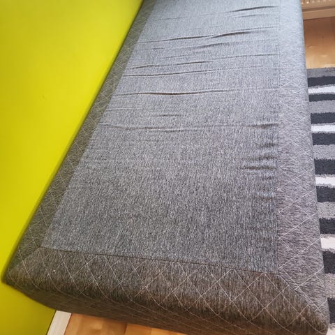 IKEA Stavanger säng med IKEA madrass i svart tyg. Enkelbädd med ben och överliggande bäddmadrass. Passar som vanlig säng i sovrum, gästrum . Neutral design som fungerar med många olika inredningsstilar. Säng mått :Längd 200, Bred 90 , Höjd 58. Transportera till din hem för extra kostnad beror på avstånd.
