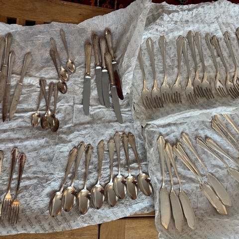 Bestickset i rostfritt stål. Setet innehåller knivar, gafflar, skedar och teskedar i en enhetlig design. Passar för användning till vardags och vid dukning till flera personer. Besticken levereras i originalförpackning enligt bilderna.