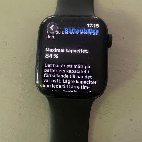 En apple watch serie 7 41mm (från 2021) som använts väldigt sparsamt. Den har haft ett skärmskydd men har några pyttesmå repor, påverkar ej utseende eller funktion. Den fungerar felfritt, batteritiden är som när jag köpte den och har mest legat i en låda. Det är varianten med både GPS och cellular vilket gör att du kan använda den utan att ha din telefon nära. Du kan både ringa,smsa och spela upp musik från Spotify direkt i hörlurarna vilket varit toppen vid tex löprundan när man inte vill konka på telefonen. Medföljer gör orginalkartong, ett beige armband med två längder, ett svart med två längder samt ett i svart tyg/resår.
