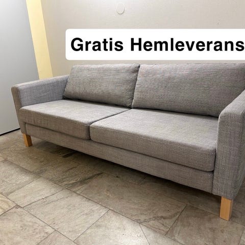 IKEA soffa Karlstad, 3-sits i bra skick. Den är ca 3 år, lite använd, djur- och rökfritt hem. Soffan har raka armstöd och två sittdynor samt två ryggkuddar. Klädseln är ljusgrå, avtagbar o tvättbar och soffan passar som sittmöbel i vardagsrum eller liknande. Finns att hämta på Södermalm.