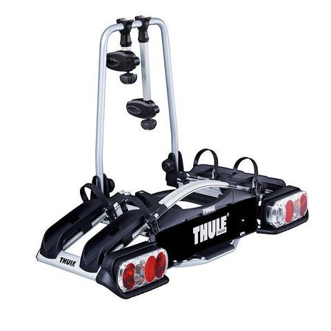 Cykelhållare för montering på bilens baklucka. Stomme i aluminium med svarta plast- och gummidetaljer. Utrustad med flera remmar för fastsättning mot bilen samt justerbara hållare för cykelramen. Avsedd för transport av cyklar på personbil. Passar bakluckor med möjlighet att fästa remmar upptill och nedtill. Ingen elanslutning eller ljusramp är integrerad i hållaren.