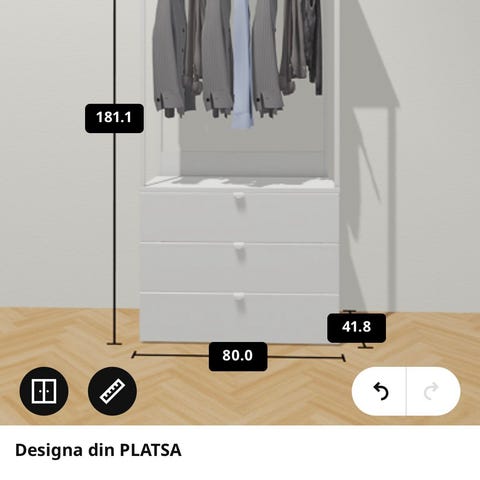 Alla delar är från IKEA PLATSA-systemet med FONNES dörrar.