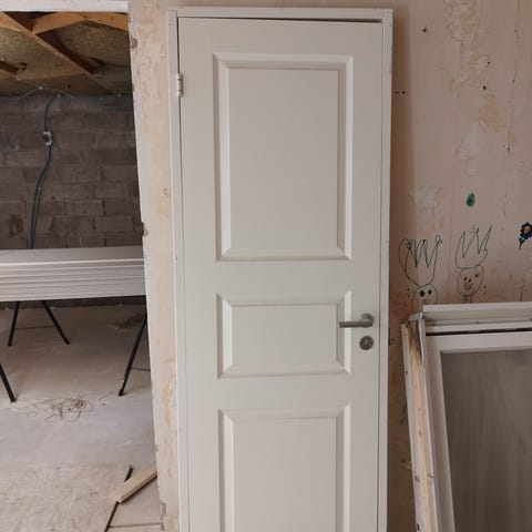 Innerdörr vit med glaspartier och slät vit innerdörr