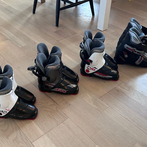 Grå mönstrade strumpor perfekt i slalompjäxan.